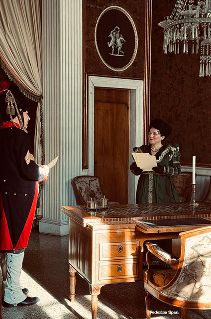 La visita animata ripercorre la seconda parte della storia di Villa Pisani, l'antica residenza di Stra sulla Riviera del Brenta, proprietà dei Pisani fino al 1807, quando la villa fu acquistata da Napoleone, divenuto re d'Italia nel 1805, che la donò al suo vicerè, Eugenio di Beauharnais, il quale vi riammodernò gli appartamenti in stile impero, per sé e per sua moglie, la viceregina Augusta Amalia, figlia del principe elettore di Baviera. Benché il matrimonio fosse stato concordato per ragioni politiche, i due si amarono teneramente e appassionatamente, come la visita rivela attraverso le confidenze dell'attendente del vicerè. La villa e soprattutto il parco subirono in questo periodo delle profonde trasformazioni per adeguarne i servizi e lo stile alle modernità e alle nuove sensibilità romantiche venute d'oltralpe.
