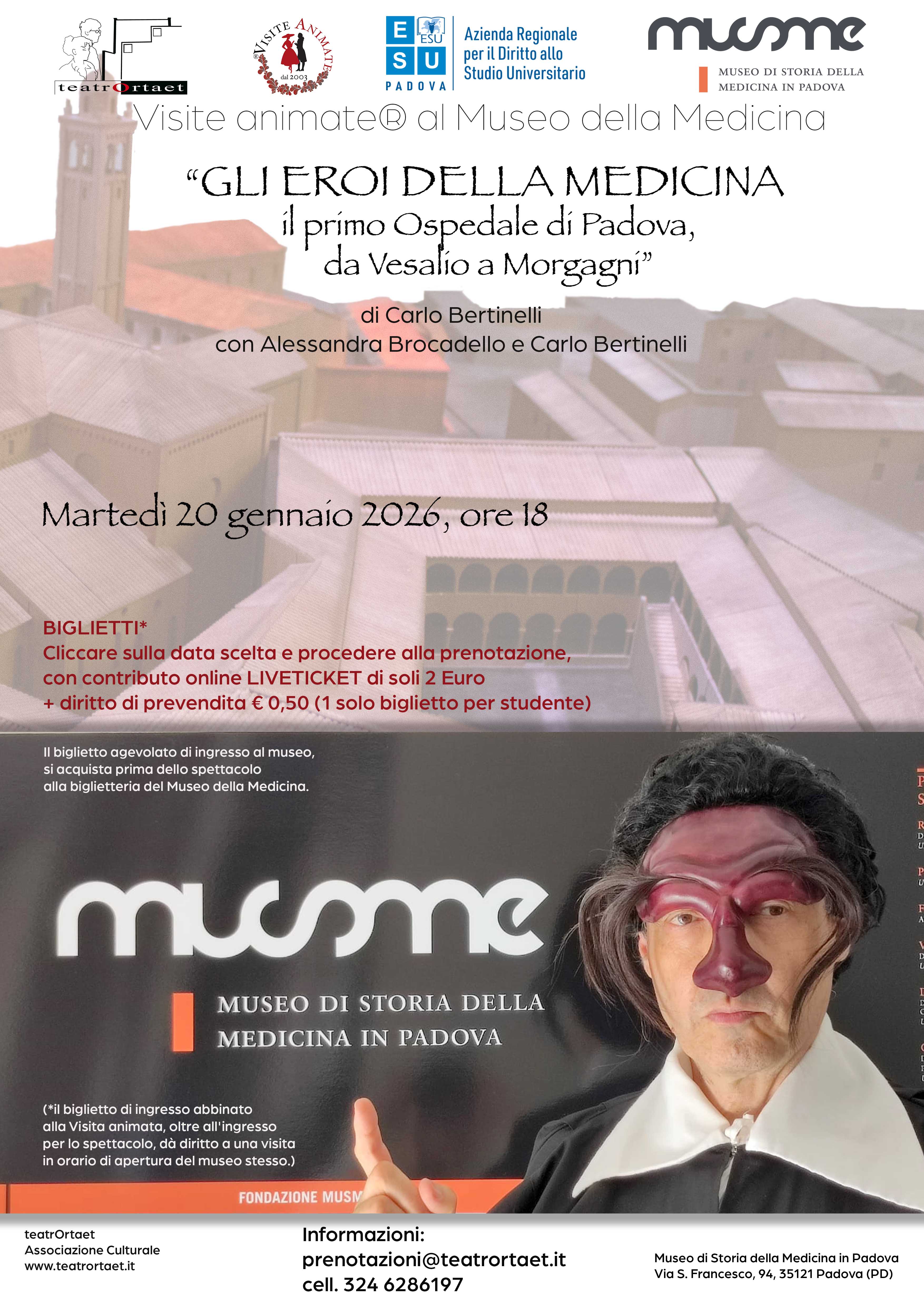"GLI EROI DELLA MEDICINA il primo Ospedale di Padova, da Vesalio a Morgagni" è un titolo dedicato al Museo della Medicina e a