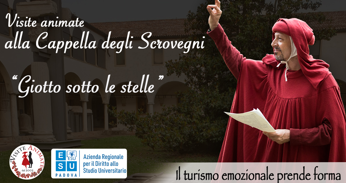 Nella Visita animata® alla Cappella degli Scrovegni di Padova, GIOTTO SOTTO LE STELLE, i personaggi evocati dagli attori di teatrOrtaet, Alessandra Brocadello e Carlo Bertinelli, accompagnano i visitatori in un itinerario che parte dal C.T.A. (corpo tecnologico attrezzato), continua nella straordinaria atmosfera della cappella, in cui il tempo scorre sempre troppo rapido per saziare gli occhi con i particolari del racconto della Salvezza e finisce nel chiostro degli Eremitani. Le parole racchiudono la contemplazione del ciclo giottesco in una cornice emozionale, ma adeguatamente documentaria, che si articola intorno a tre grandi contrapposizioni: fama-infamia; salvezza-dannazione; ricchezza-povertà.