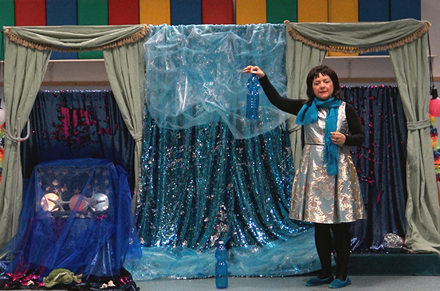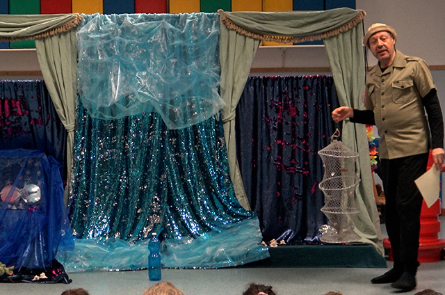 Lo spettacolo si conclude con una grande festa sulla spiaggia, con il pescatore e la ragazza (che ha deciso di diventare un’oceanografa), piacevolmente sorpresi dall’inaspettato recupero ambientale!