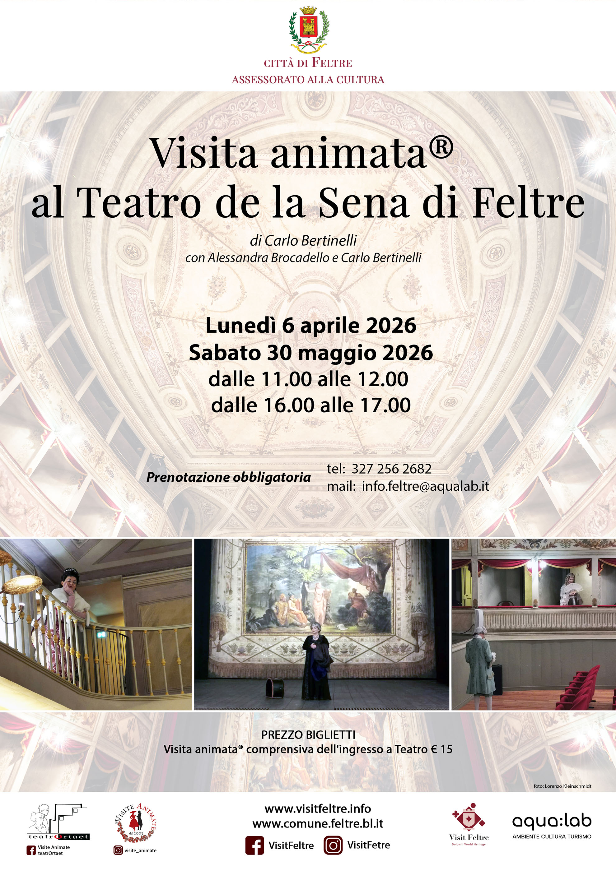 A condurre i visitatori saranno vari personaggi: spettatori del periodo Belle Epoque, Eleonora Duse, Carlo Goldoni che ricorderà il suo primo impiego di coadiutore di cancelleria e le prime opere scritte e messe in scena a Feltre, fino a Ruzante che ci porterà ai tempi della guerra della Lega di Cambrai, tempi bui per la Serenissima, quando il Centro storico di Feltre viene praticamente raso al suolo (1510).